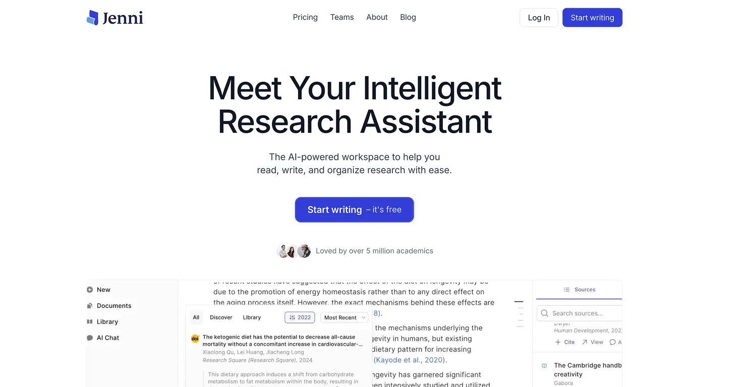 AI-powered academic writing assistant designed specifically for researchers, students, and academics to enhance research writing and citation management.