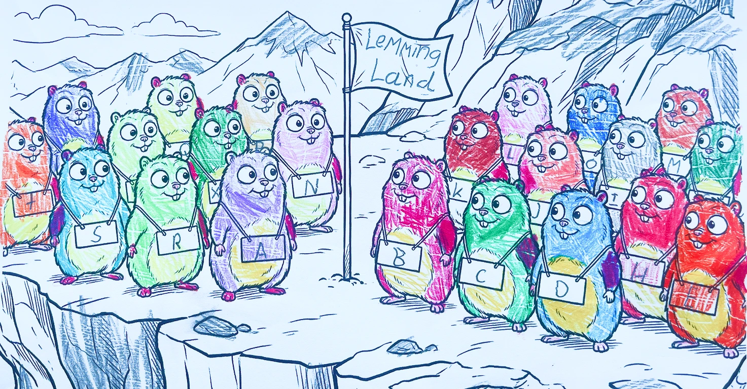 His plan? Write a name for every letter of the alphabet, from Alan to Zavier, then add "Welcome to Lemmingland" on the flag.